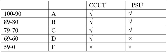 注:PSU没有补考,一旦成绩没有达到标准,需要从头重新学习这门课。