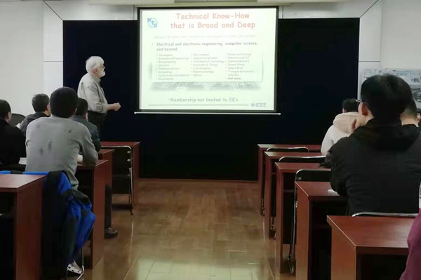 、电气与电子工程学院和计算机科学与工程学院的师生做了精彩的报告,报告题目分别为:《IEEE:志愿者的使命、愿景和角色》以及《纳米封装领域探讨》。酷18