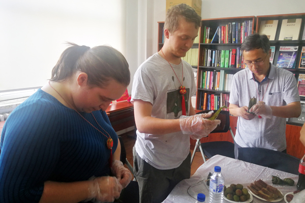 举行了“浓浓粽香传真情”包粽子活动。副校长李占国,美国奥克兰大学国际部主任盖瑞·巴博尔等外国友人,以及酷18