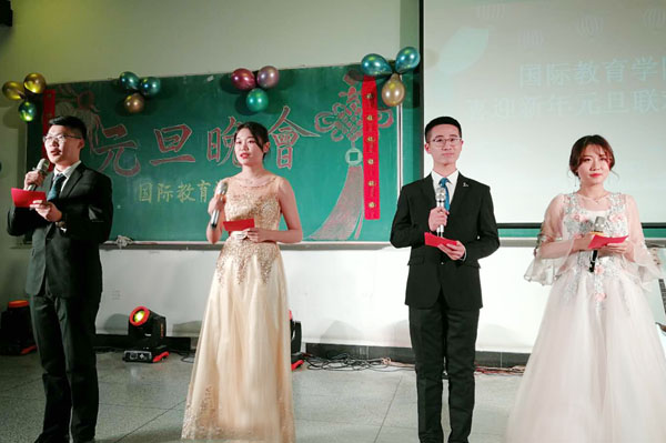 联欢晚会由文艺表演和游戏互动环节组成。歌曲《你一定要幸福》《最美的太阳》《魔鬼中的天使》,群口相声《同学会》,乐队演奏《知足》,舞蹈《抖音舞蹈串烧》《Killing Me》等节目,充分展现了国教学子积极向上、青春洋溢的精神风貌。晚会在《相亲相爱》的歌声中圆满落幕。通过同学们自编自导自演的文艺演出,衷心祝愿全院师生在新的一年里百尺竿头更进一步,学业事业蒸蒸日上。