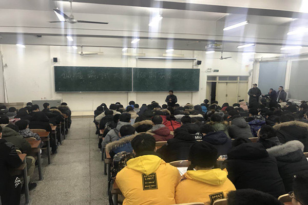 为严肃考风考纪,于12月11日至12月15日期间在南湖、北湖两个校区面向四个年级的所有学生分别召开了诚信考试专题教育大会,由各年级辅导员针对2015年11月1日施行的《刑法修正案(九)》相关内容以及《酷18