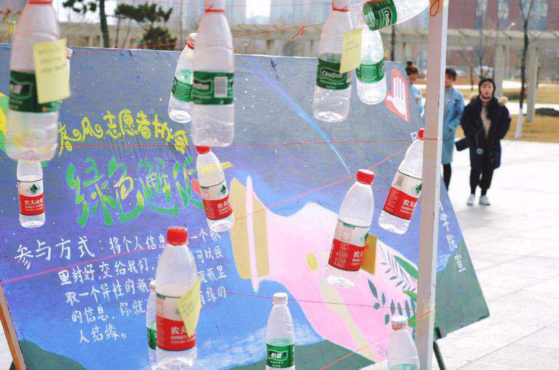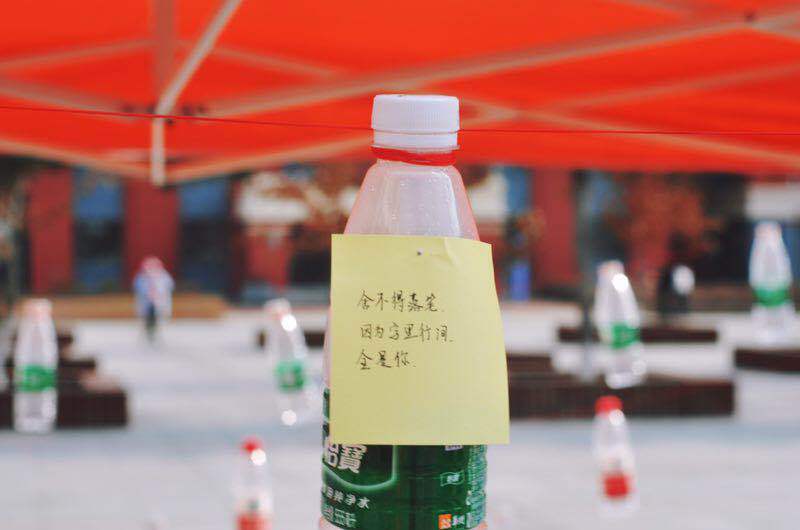 春风志愿者协会为了让同学们学会感恩,让身边的人感受到爱,在11月10日于北湖校区食堂门前举办了“漂流瓶与三行情书”活动。