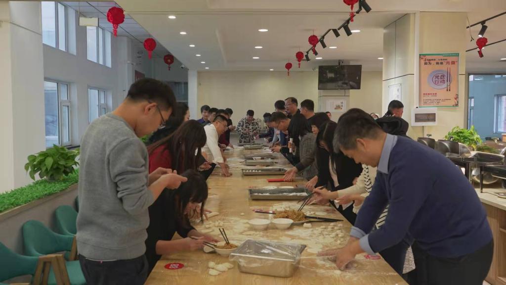 联欢会设置了包饺子比赛,猜成语小游戏,互送祝福、大合唱等环节,学院教师表演了三句半、诗朗诵、多语种歌曲串烧等节目,大家吃着自己亲手包的饺子,现场氛围十分热烈,欢声笑语不断,大家在一片喜庆祥和的氛围中共叙友谊,期待新一年的到来。
