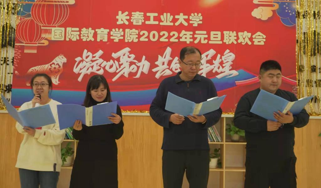 全体教职工、中外合作办学项目实施学院的领导同事、以及曾经在学院共事的同事们欢聚一堂,共同迎接新年的到来。